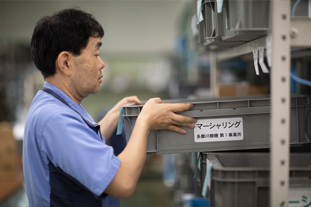 私たち多摩川ロジステックスが担う業務は多岐にわたり、社員たちは各自の得意分野を活かしてさまざまな現場で活躍しています。自動車やリフトの運転、荷物の仕分け、書類の作成、部品の検査、部材の加工、商品の受発注…。どれも決して華やかなものではありませんが、多摩川精機グループにとってはなくてはならない存在です。